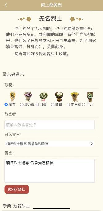 第二步:选择“向无名烈士鲜花”/“向有名烈士献花”,即可线上祭扫。