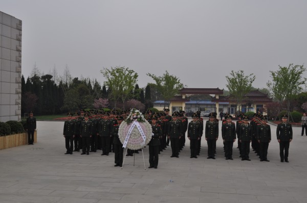 伴随着庄严的音乐声,两名队员向革命烈士纪念碑献上花圈,全体队员向纪念碑三鞠躬以表达对革命烈士的深切怀念和无尽哀思。队员们怀着无比崇敬的心情瞻仰了烈士陵园墓区以及陈列室。在陈列室